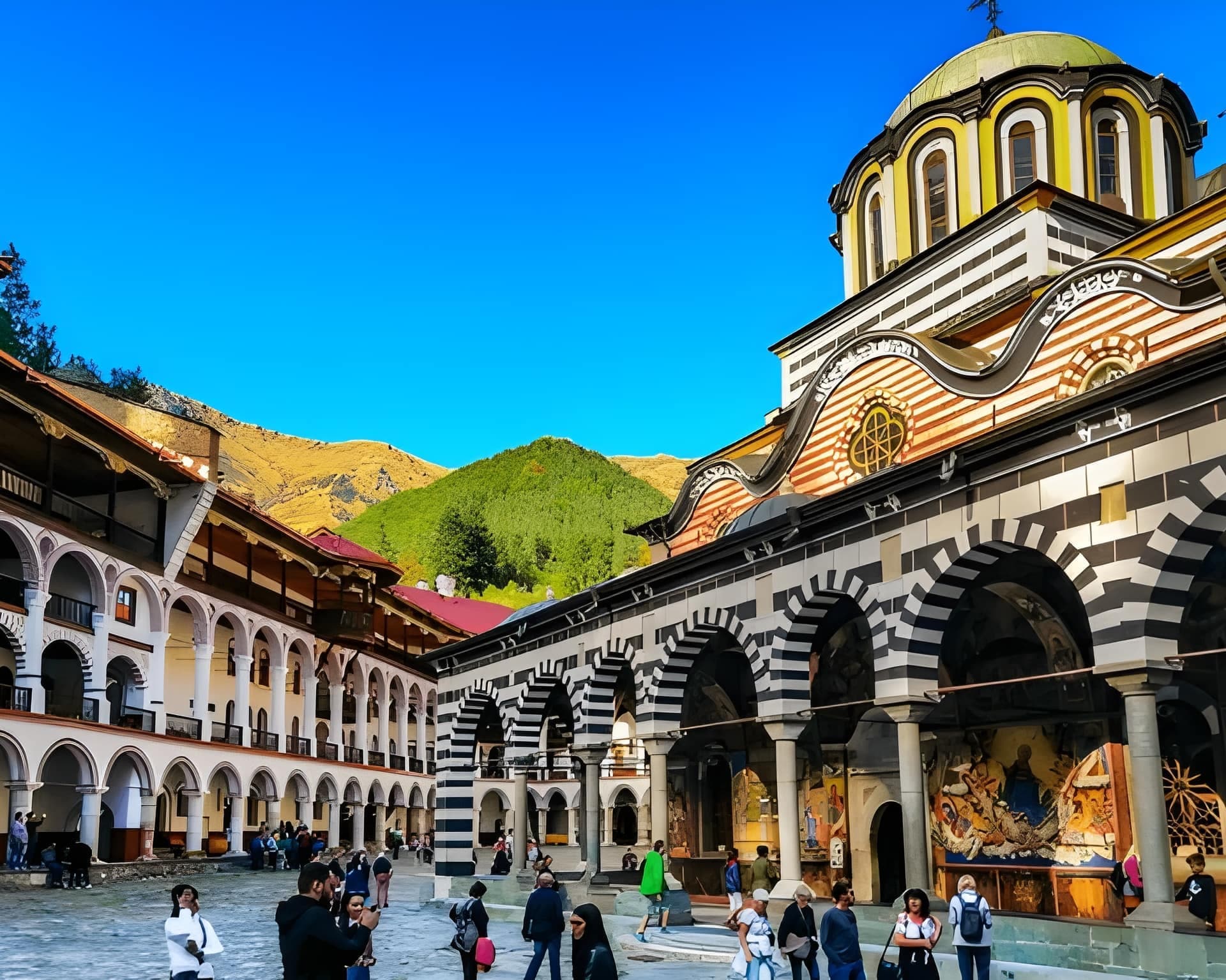 • Excursión al Monasterio de Rila, el más grande e importante de Bulgaria. Rodeado de montañas, con murales coloridos, patios porticados y torres defensivas, es un lugar que combina arte, fe e historia de forma extraordinaria.