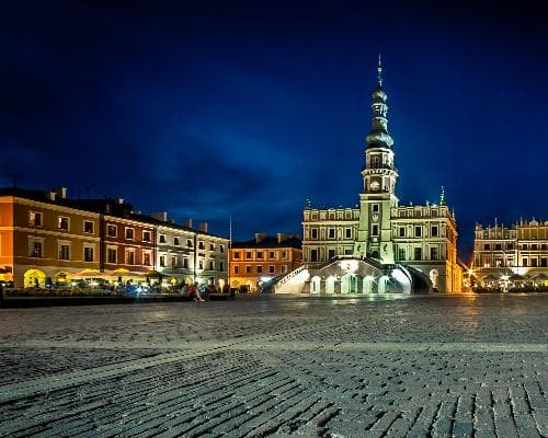 • Por la tarde, el camino continúa hacia Zamosc, conocida como la “Padua del Norte”. Un breve paseo revela su trazado renacentista perfecto, sus fortificaciones y su arquitectura que fusiona influencias italianas y centroeuropeas, razón por la que su centro histórico figura en la lista de la UNESCO.